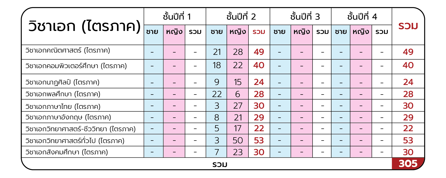 จำนวนนักศึกษาทั้งหมด
